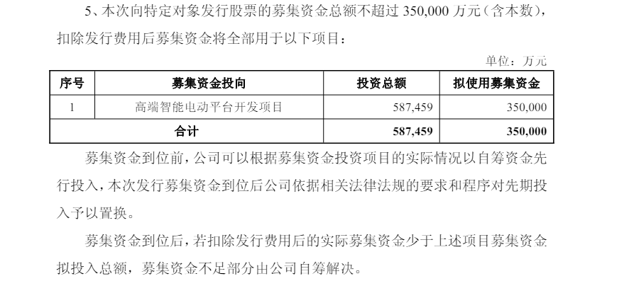 本次刊行的召募资金金额退换后,项主义投资总数仍为58.75亿元。江淮汽车称,召募资金到位前,公司不错凭证召募资金投资项主义本体情况以自筹资金先行干涉,本次刊行召募资金到位后公司依据干系法律规定的要乞降措施对先期干涉给予置换。