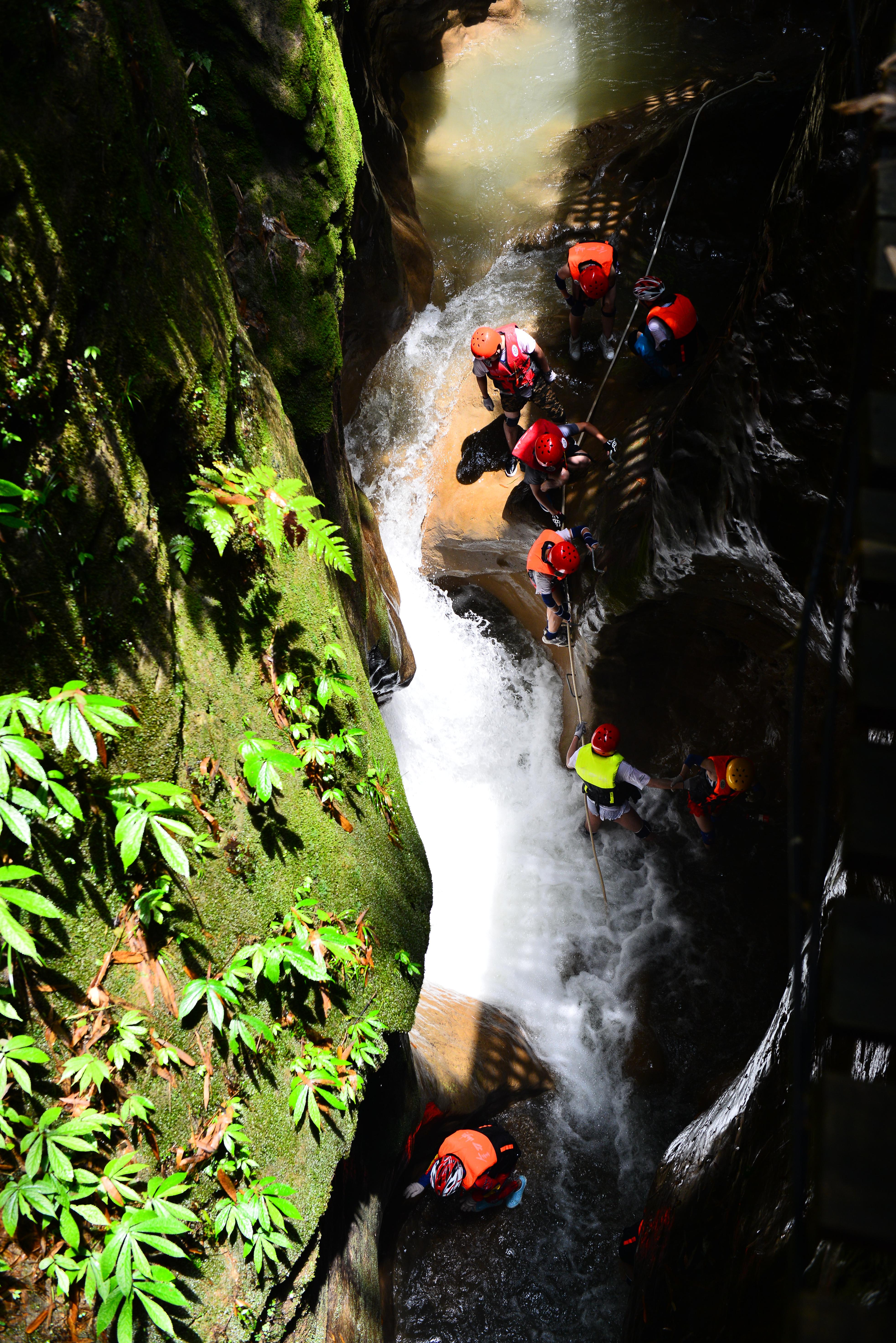 搭客在金刀峡景区体验溪降。(秦廷富 摄)