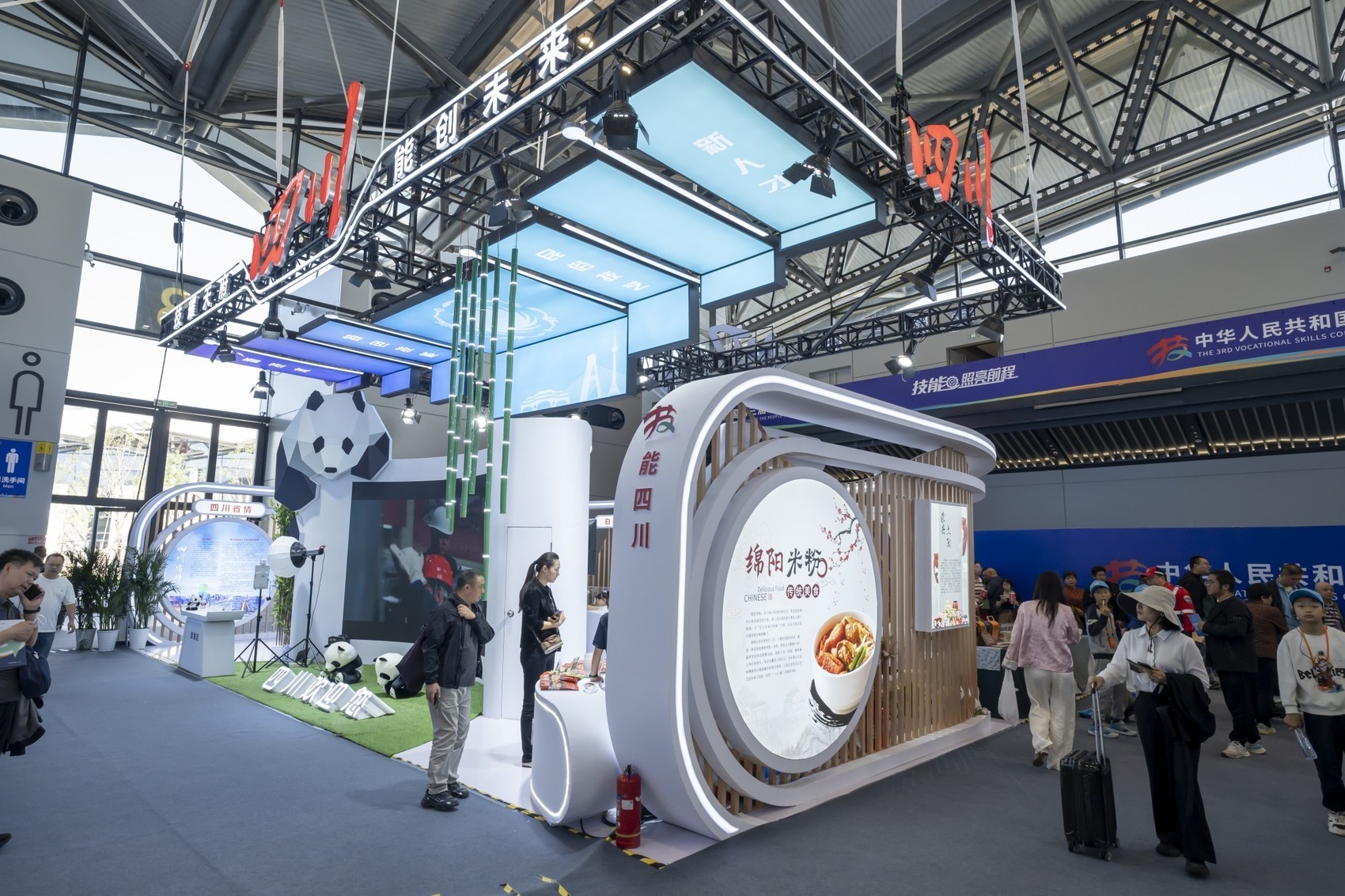 “比拟曩昔,通过捏造本质、智能交互等技巧的期骗能普及培训质效。”“今天,咱们在四川展馆向环球保举岗亭。”……走进第三届寰球处事手段大赛四川展馆,中心位置的智能制造实训演示、直播带岗接连招引概念。